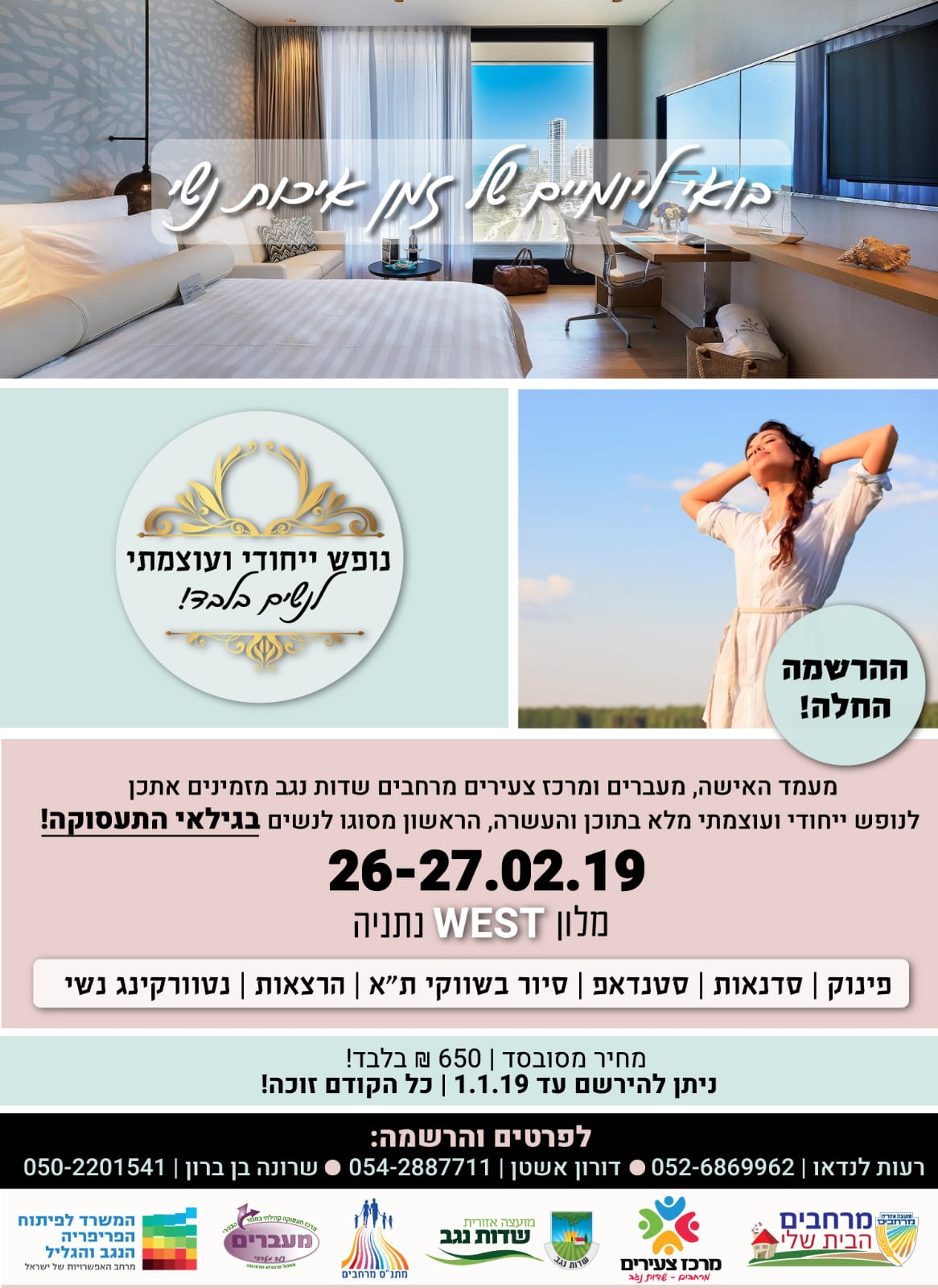 | מהות הפעילות: | נופש יחודי ועוצמתי 26-27.02.2019